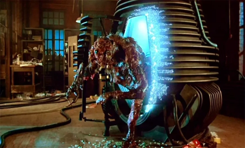об учёном, экспериментирующим с телепортацией и случайно смешивающим свою ДНК с