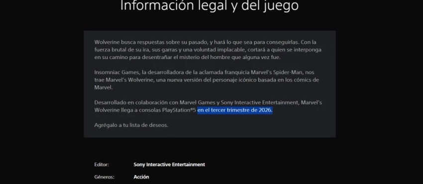 Обложка: скриншот игры Marvel’s WolverineПользователи сети обратили внимание на страницу Marvel’s Wolverine в латиноамериканском регионе PlayStation Store. В описании говорится о том, что игра выходит в третьем квартале 2026 года (июль, август и сентябрь).
