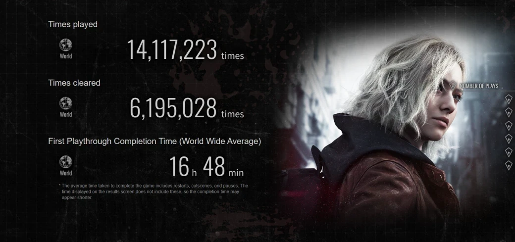 Обложка: скриншот игры Resident Evil RequiemCapcom поделилась обновлённой статистикой игроков Resident Evil Requiem по всему миру. Для учёта личных результатов необходимо после прохождения привязать свой аккаунт к учётной записи CAPCOM ID.