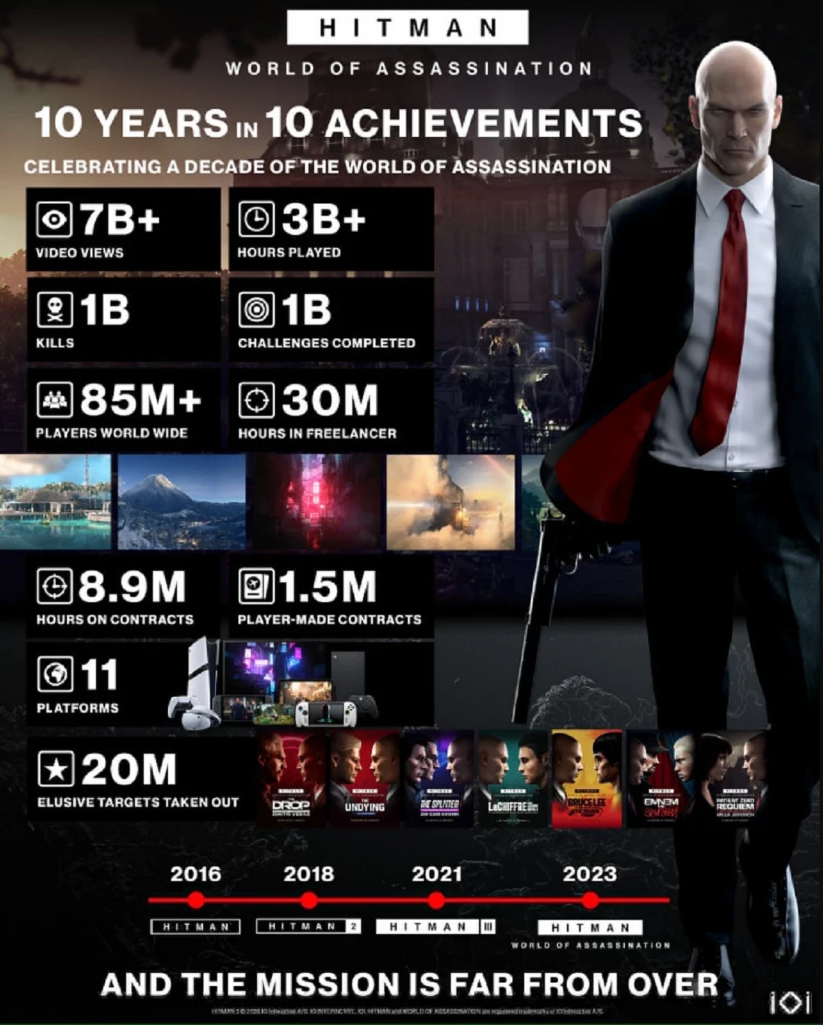 В IO Interactive не могли не отметить активную поддержку Hitman World of Assassination. Игра посетила 11 разных платформ, а также получила множество «неуловимых целей» с лицами известных личностей (например, сейчас доступен контракт с Миллой Йовович). Всего игроки ликвидировали 20 миллионов особых целей.